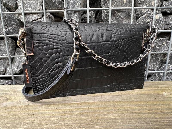 Handgemaakt leren tas Florence zwart croco met zwart leer