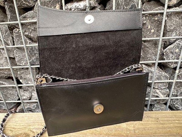 Deze tas is gemaakt van fantastische kwaliteit leer. De klep is van zwart croco in combinatie met zwart leer.