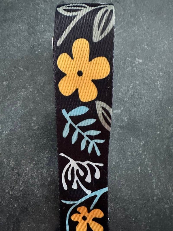 Bag strap / Tassenriem zwart met bloemen geel en blauw